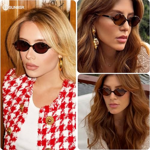 • RETRO OVAL SUNGLASSES: Retro Sunglasses features a unique 90s oval design with metal rivets on the sides, exquisite and compact, cute and fashionable, suitable for various face shapes.