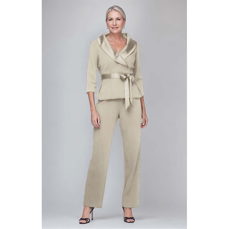 More information about Women's Suits 2 Pieces Suits Formal Wedding Guest Satin Stretch Crepe Elegant Simple Minimalist 3/4 Sleeve Pleated Ankle Length Shawl Lapel