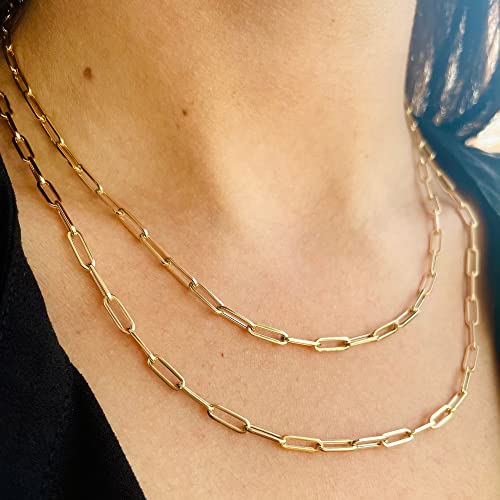 • CHIAN NECKLACE FOR WOMEN - Solid 925 sterling silver clasp, 2.5mm gold paperclip chain necklace.This gold chain necklace can layering with other pendant or chain will get a popular trends. Perfect paperclip chain for women jewelry collection.