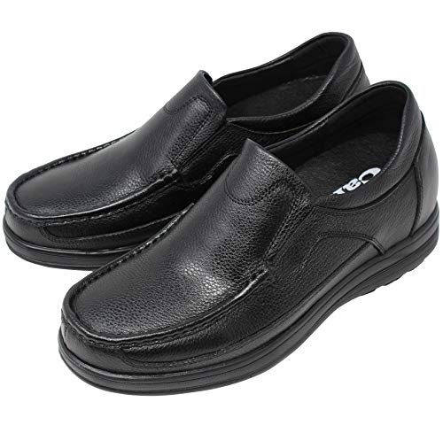 sought-after ! CALTO Men's Invisible Height Increasing Elevator Shoes - Black Premium Leather Slip-on Lightweight Casual Loafers - 3 Inches Taller - G1825 - Size 12 D(M) US