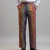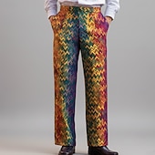 More information about Men's Geometric Color-block Trousers Dress Pants Suit Pants Mid Waist Fashion Casual Outdoor Holiday Regular Fit Flat-Front Straight Leg Pants with Pockets Summer Spring Fall 3D Print Purple Orange