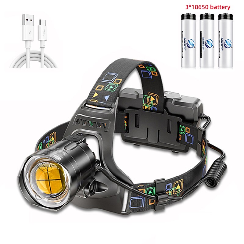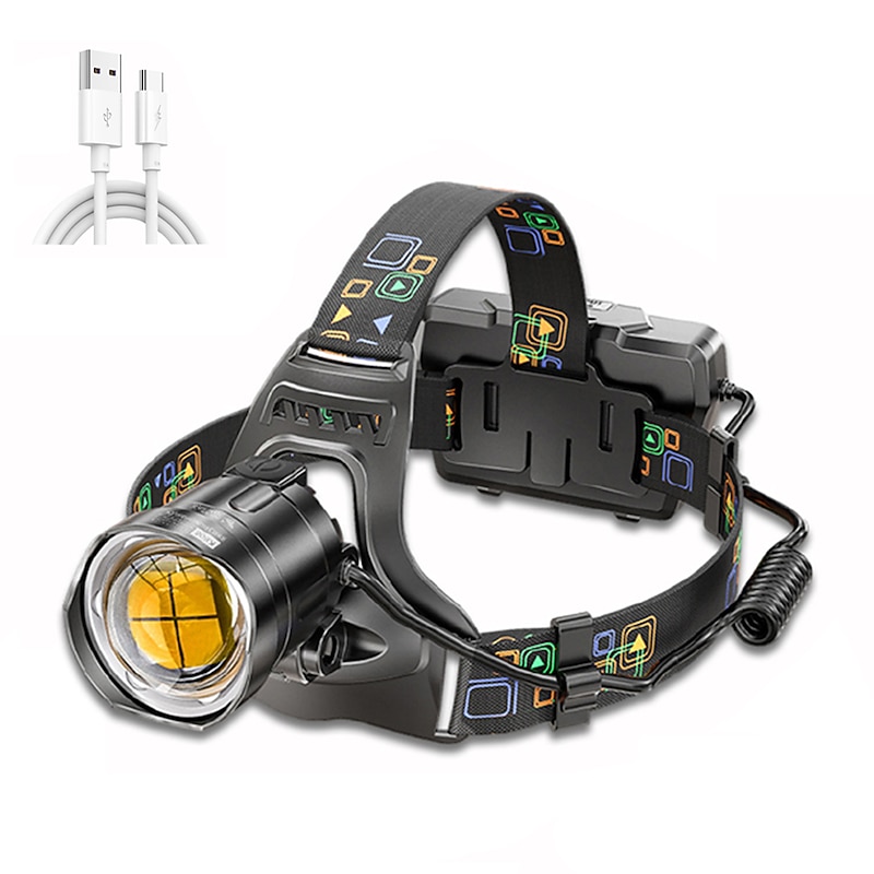 LED Headlamp Rechargeable Outdoor Super Bright With XHP90 Lamp Beads Waterproof Headlight Power Display Suitable For Exploration Hunting Fishing 12