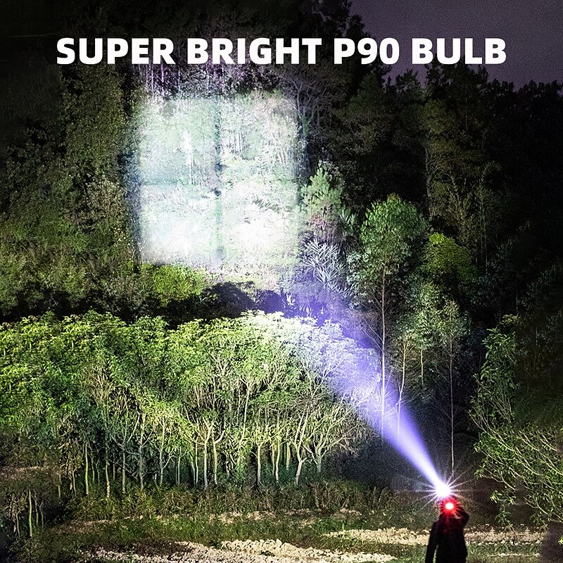 LED Headlamp Rechargeable Outdoor Super Bright With XHP90 Lamp Beads Waterproof Headlight Power Display Suitable For Exploration Hunting Fishing 11