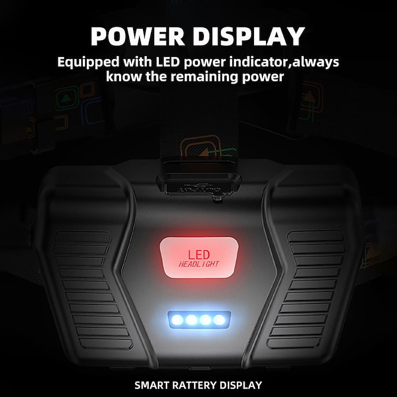 LED Headlamp Rechargeable Outdoor Super Bright With XHP90 Lamp Beads Waterproof Headlight Power Display Suitable For Exploration Hunting Fishing 5
