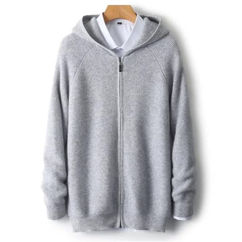 Men's Winter Cashmere Sweater Wool Zipper Cardigan Hooded Collar Knitted Long Sleeved Warm Tops 5