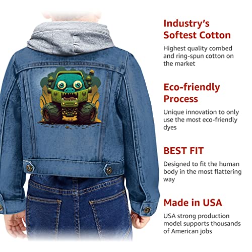 Truck Toddler Hooded Denim Jacket - Cartoon Jean Jacket - Graphic Denim Jacket for Kids 4