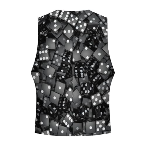 Black Dice with White Spots Men's Suit Vest Slim Fit V-Ncek Waistcoat Business Casual Vest