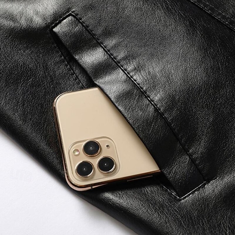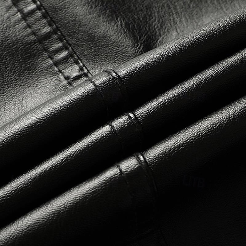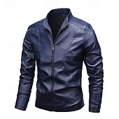 More information about Men's Faux Leather Jacket Motorcycle Jacket Outdoor Casual Windbreaker Slim Fit Fall Winter Solid Color Punk Active Regular Black Burgundy Blue Jacket