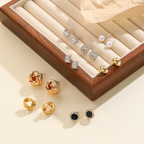 8 Pairs Stud Earrings Set for Women Cubic Zirconia Halo Studs Gold Knot Twist Stud Earrings Faux Pearl Simple Post Earrings for Women 5