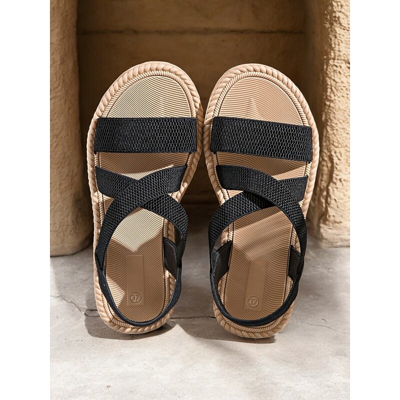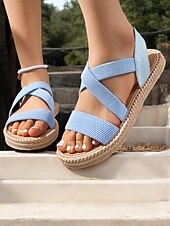 More information about Women's Navy Blue Cross-Strap Sandals, Lightweight and Comfortable Espadrille-Style Flats for Summer Beach and Casual Wear