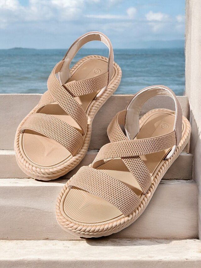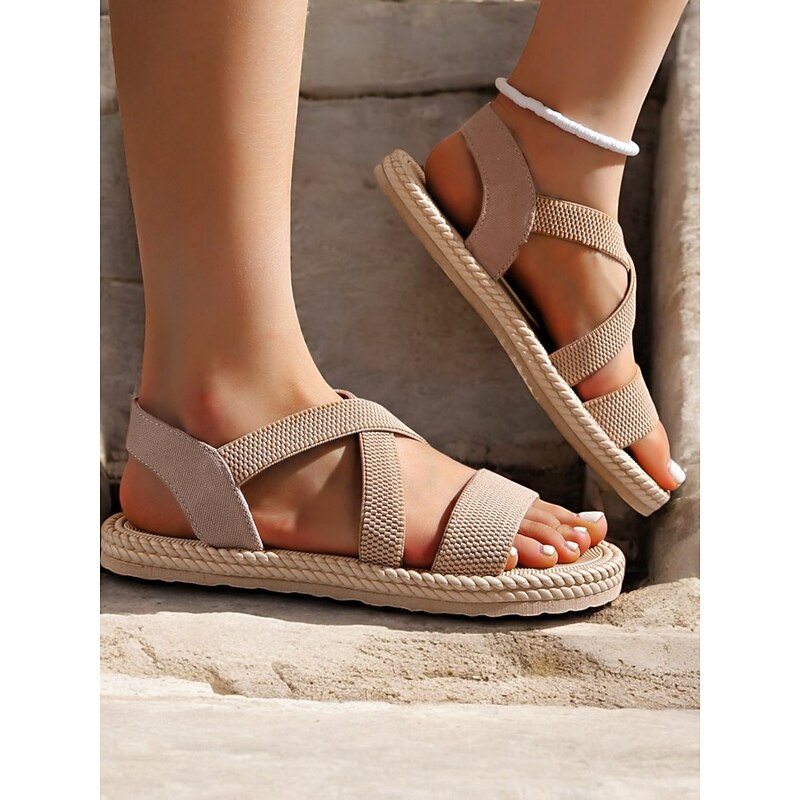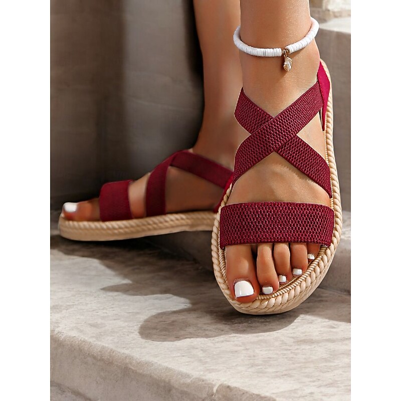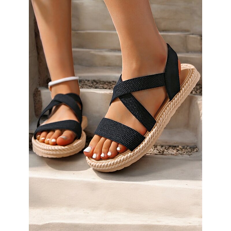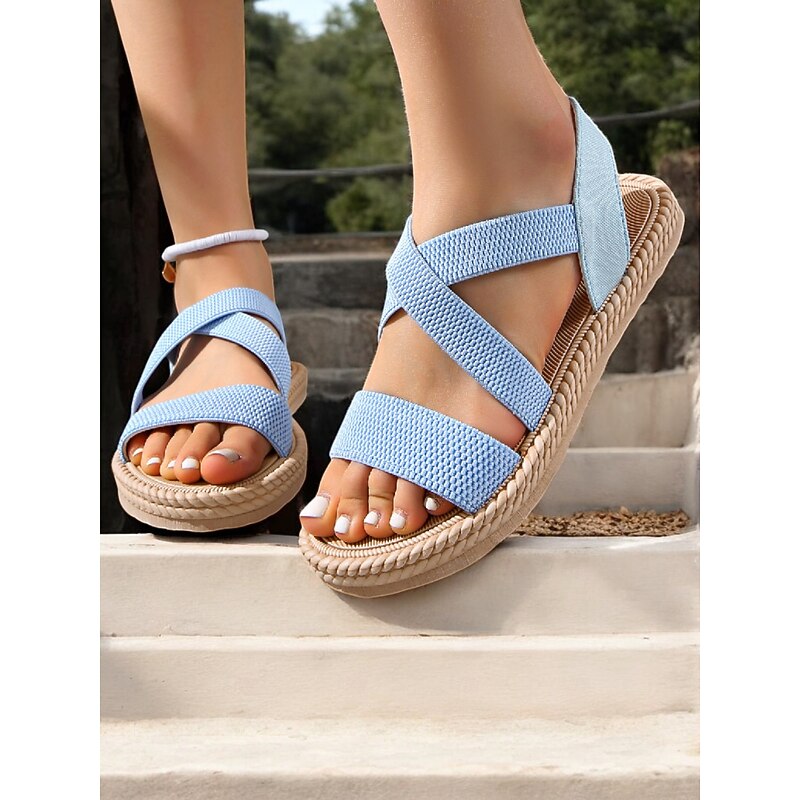 Women's Navy Blue Cross-Strap Sandals, Lightweight and Comfortable Espadrille-Style Flats for Summer Beach and Casual Wear 20