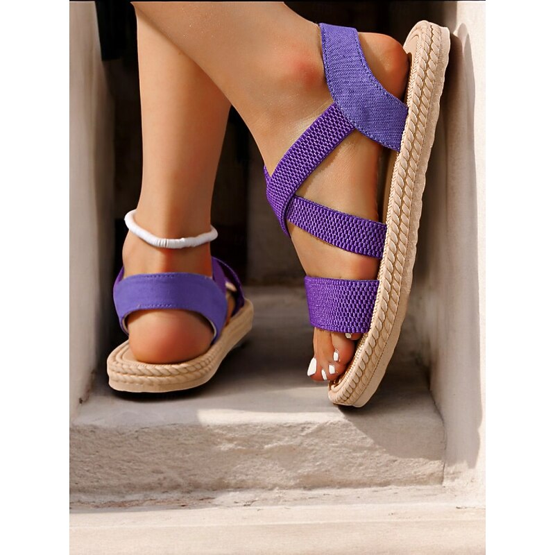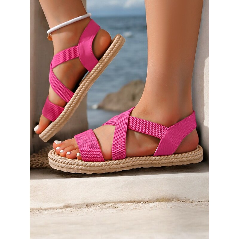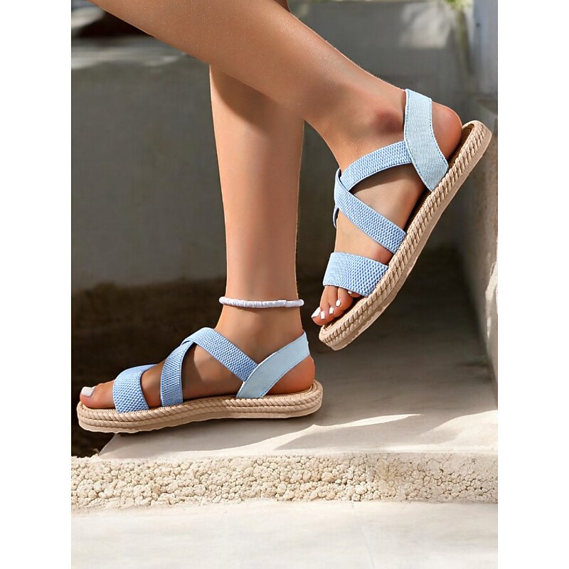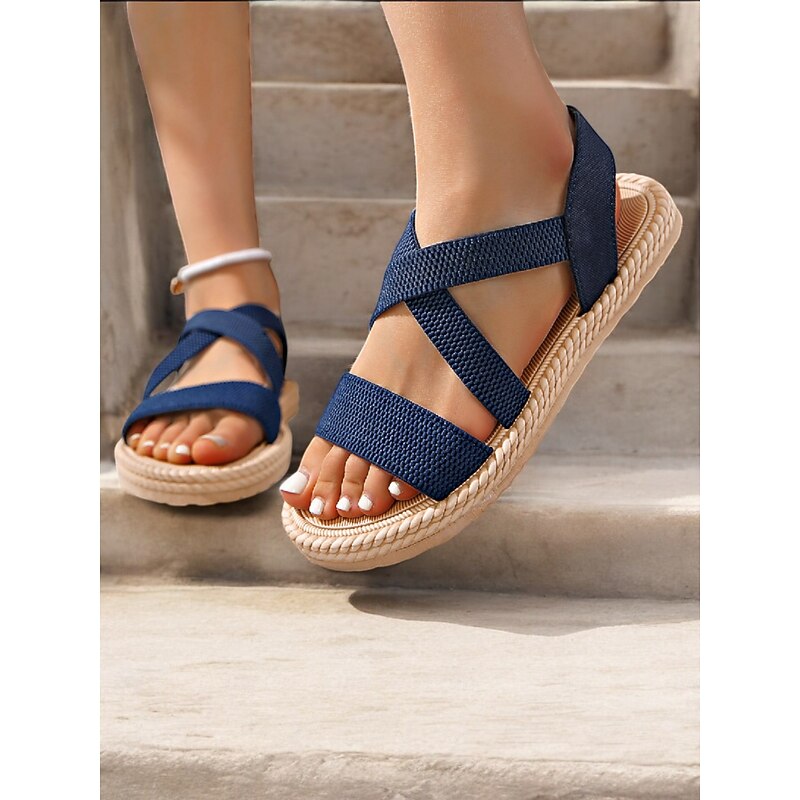 HOT ! Women's Navy Blue Cross-Strap Sandals, Lightweight and Comfortable Espadrille-Style Flats for Summer Beach and Casual Wear