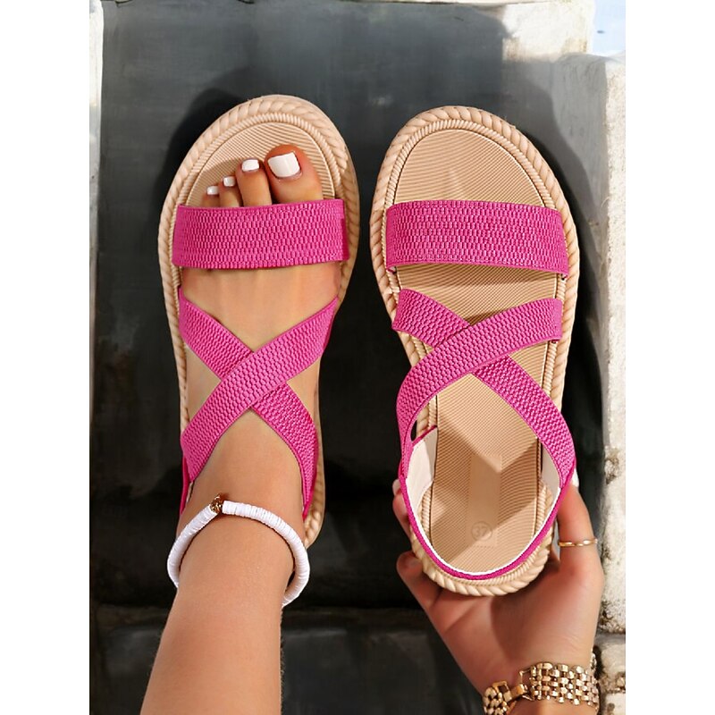 Women's Navy Blue Cross-Strap Sandals, Lightweight and Comfortable Espadrille-Style Flats for Summer Beach and Casual Wear 27