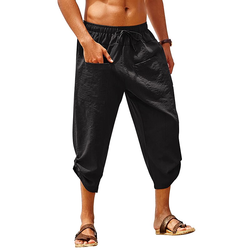 More information about Men's Shorts Linen Shorts Summer Shorts Beach Shorts Capri Pants Drawstring Elastic Waist Front Pocket Plain Comfort Breathable Daily Holiday Going out Hawaiian Boho Black White
