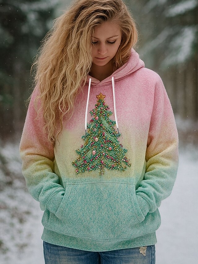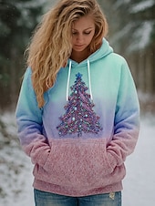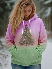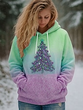 More information about Women's Pullover Hoodie Sweatshirt Graphic Christmas Tree Casual Long Sleeve Hooded Regular Tops Party Evening Wear Street Dailywear Pink Blue Purple Green Spring Fall Winter