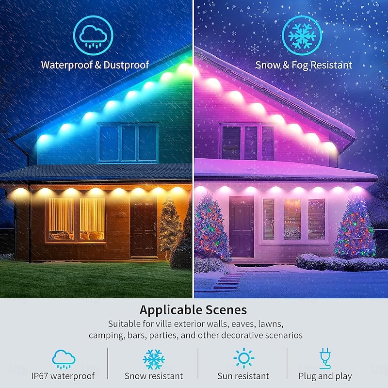 $175.71 - LED String Downlights Eternity Lights Permanent Eaves Lights Outdoor Lights with WIFI App & Remote RGBIC Smart Eaves Lights IP67 Waterproof Year-Round House Roof Outdoor Lighting for Christmas Holiday Extendable 2025. Shop for cheap Smart Strip Lights online? Buy at lightinthebox.com on sale today!
