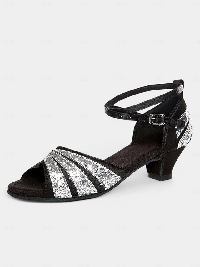 Highlights - Latin Dance Shoes featuring sparkling glitter - Elevate your dance style with these glamorous shoes - Dazzle on the dance floor with these eye-catching shoes - Perfect for adding a touch of sparkle to your Latin dance performances - Stand out and shine with these glittering Latin dance shoes