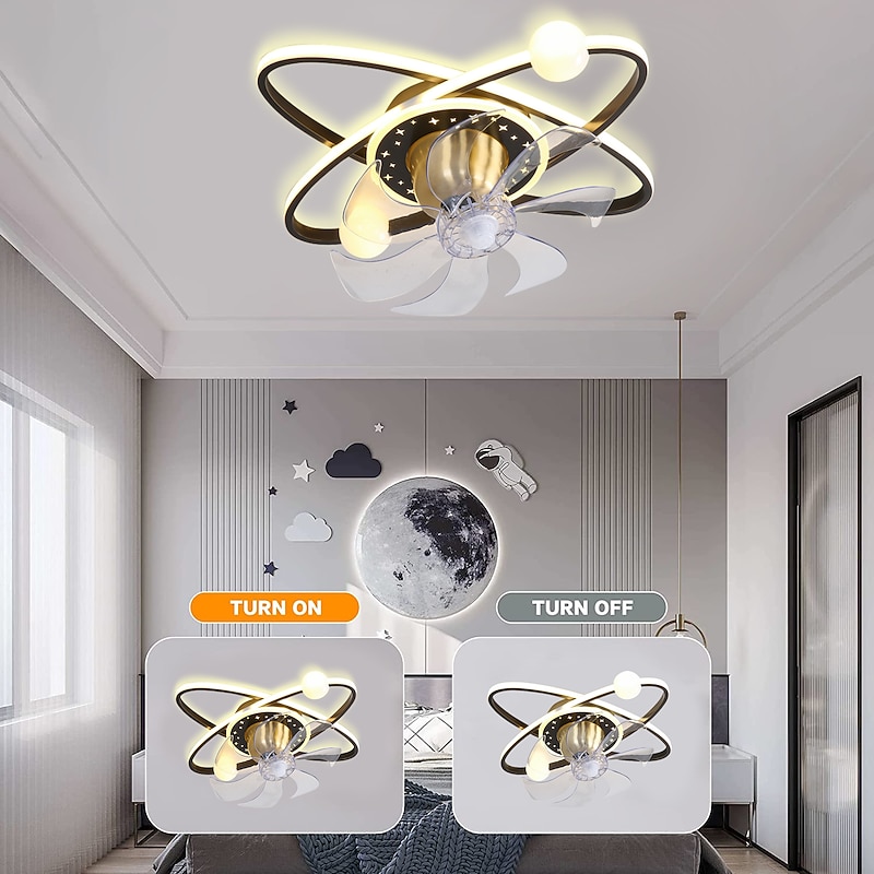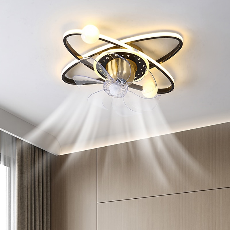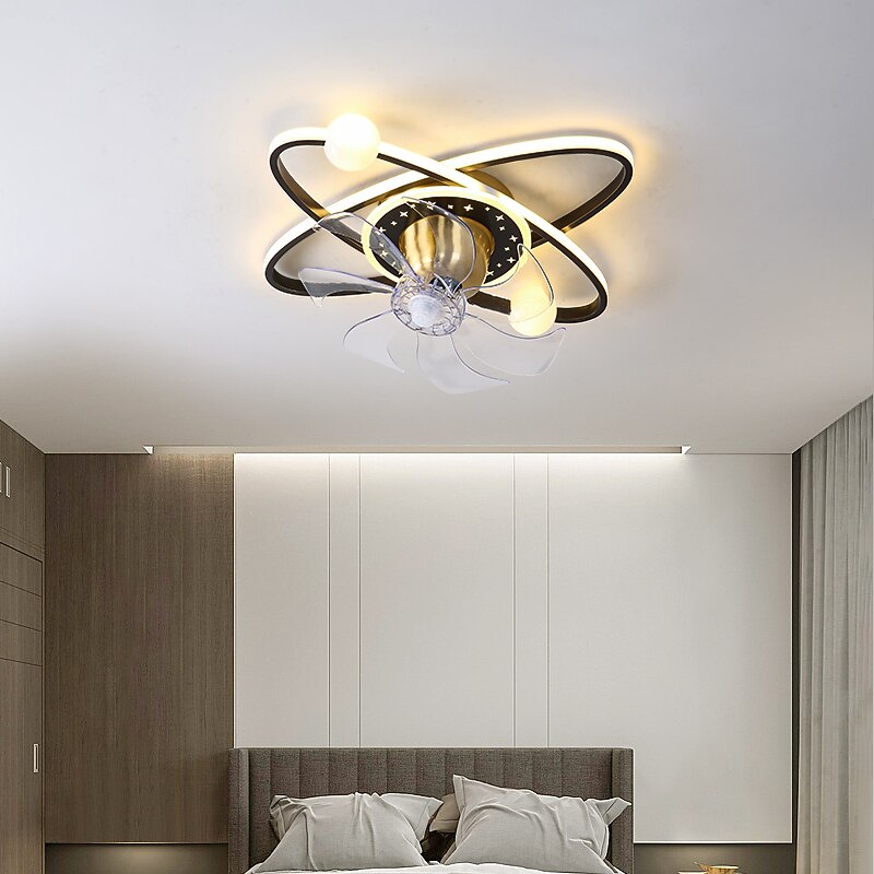 HOT ! Ceiling Fan with Light Dimmable Circle Design Crystal 57cm 6 Wind Speeds Modern Ceiling Fan for Bedroom, Living Room App & Remote Control 110-240V
