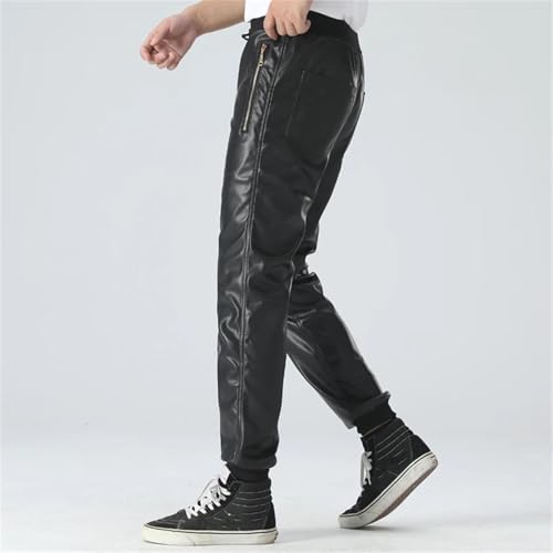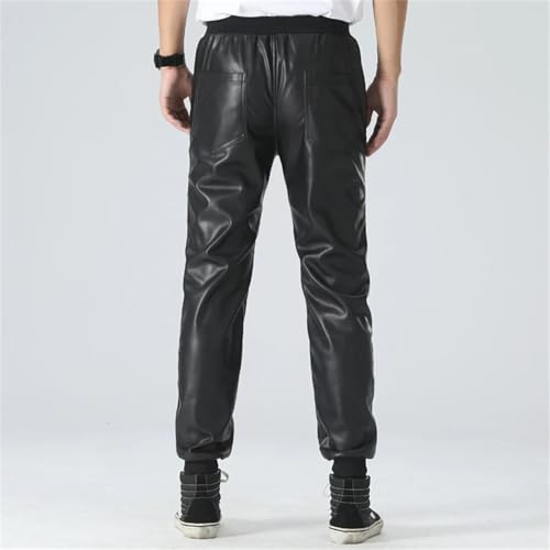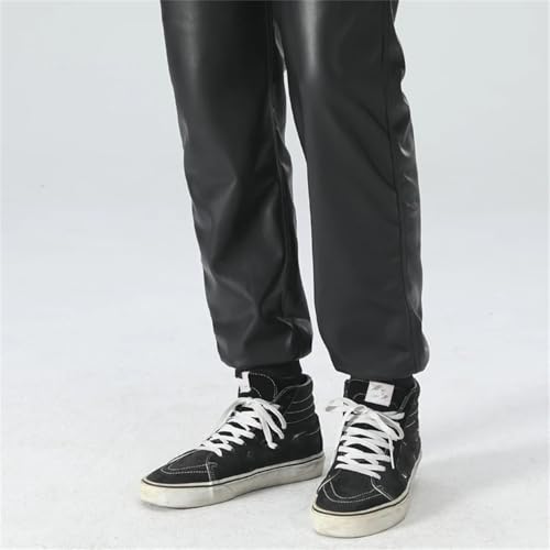 Men's Leather Jogger Pants Elastic Waist Pu Motorcycle Biker Style Casual Trousers Comfortable Slim Fit Streetwear 7