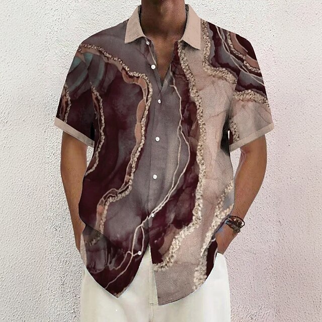 More information about Men's Geometric Marble Abstract Liquid Art Shirt Summer Shirt Button Up Shirt Short Sleeve Fashion Casual Vacation Holiday Streetwear Summer Turndown 3D Print Front One Pocket Linen Like Shirt Brown