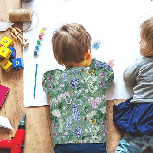 JUNZAN Spring Flowers Butterflies Sage Green Little Boys Sweatshirts Hoodies Long Sleeve Sweatshirt With Hoodie Sports 4T 6