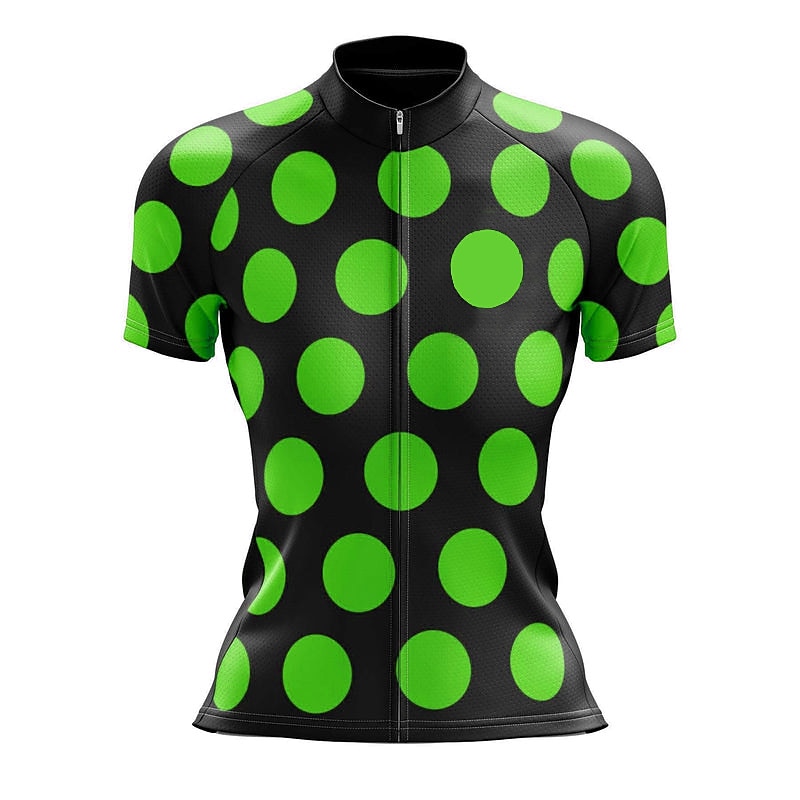 Highlights - Designed for women - Made with stretchy materials for optimal comfort and mobility - Perfect for athleisure wear and a wide range of outdoor activities - Quick-drying properties allow for fast moisture absorption and evaporation - Moisture-wicking technology helps to keep you dry and comfortable - Features a stylish dot design - Ideal for both mountain bike MTB and road bike cycling adventures.