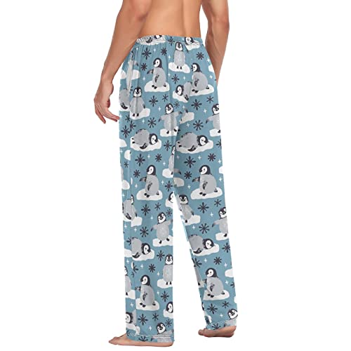 Christmas Winter Men's Pajama Pants Cute Penguins and Snowflakes Super Soft Lounge Pajama Bottoms with Pockets 1