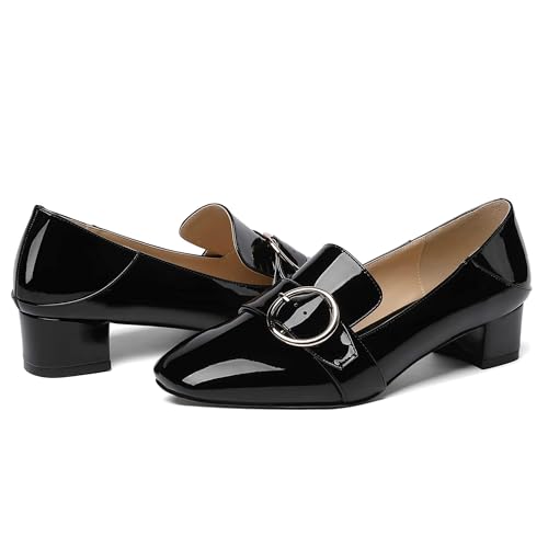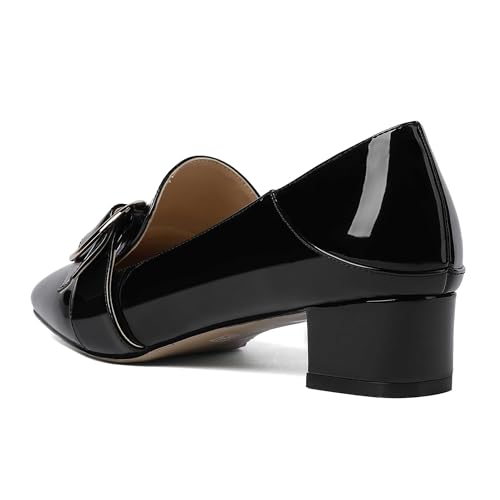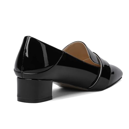 MODENCOCO Women's Slip On Patent Square Toe Chunky Low Heel Pumps Casual Dress Mules Shoes 1.5 Inch 5