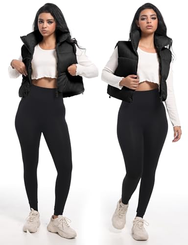 HOT ! Buauty Cropped Puffer Vest Women 2025 Winter Puffy Vest with Pockets Lightweight Stand Collar Zip Up Sleeveless Jacket