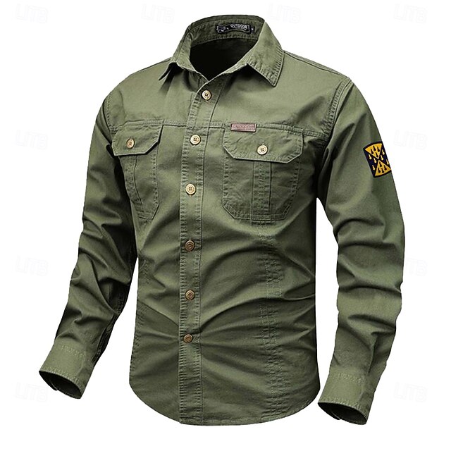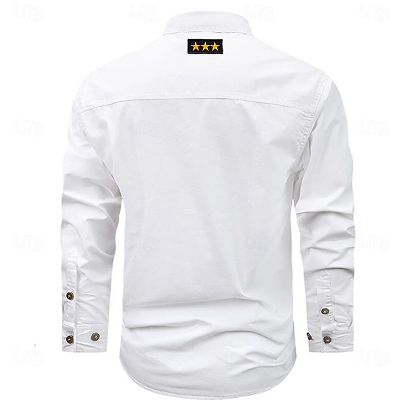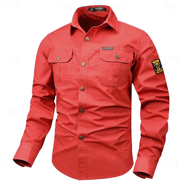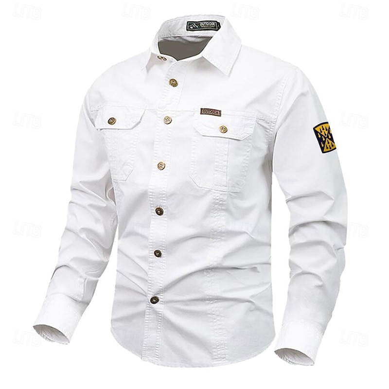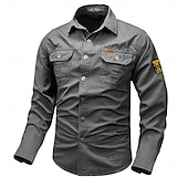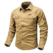 More information about Men's Solid Color Work Shirt Western Shirt Cargo Shirt Long Sleeve Casual Tactical Sports & Outdoor Going out Winter Spring & Fall Turndown Print Black White Army Green Red Blue