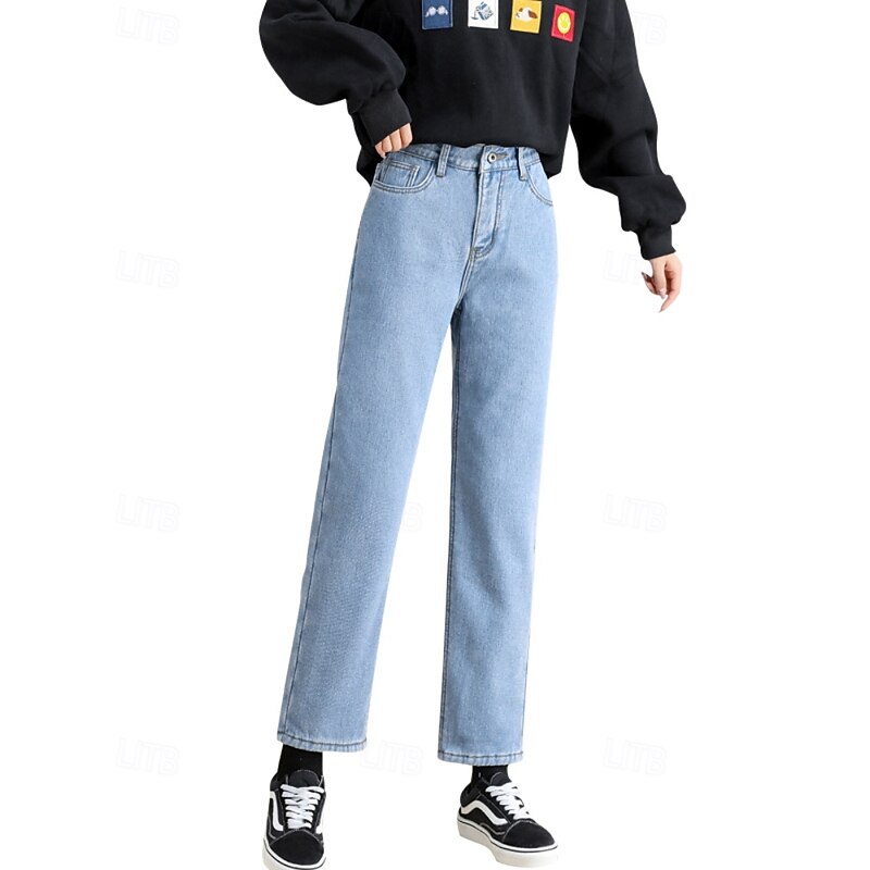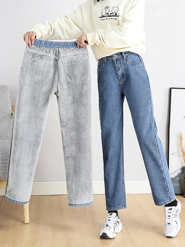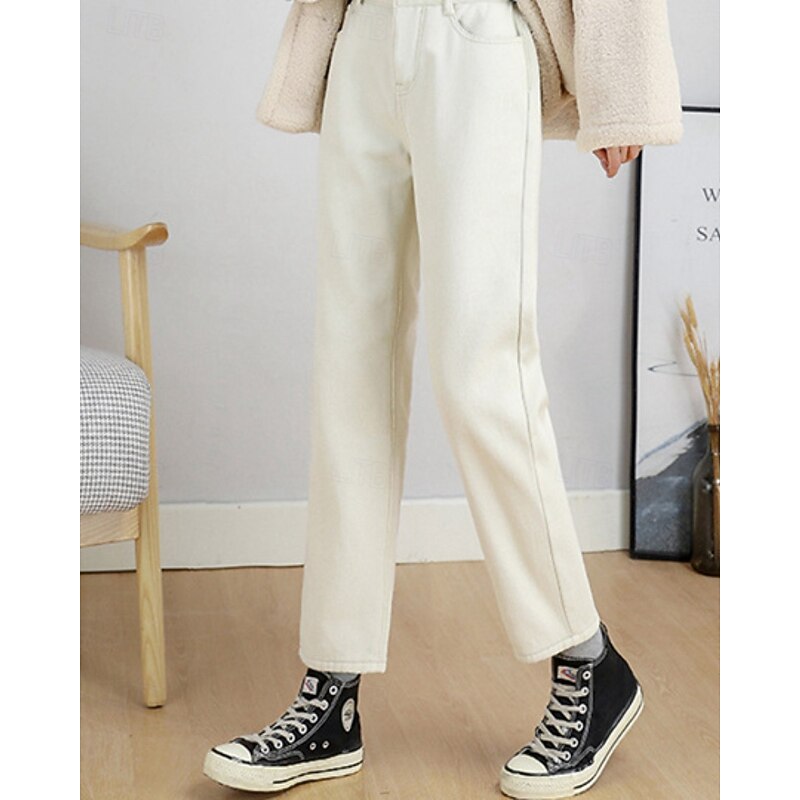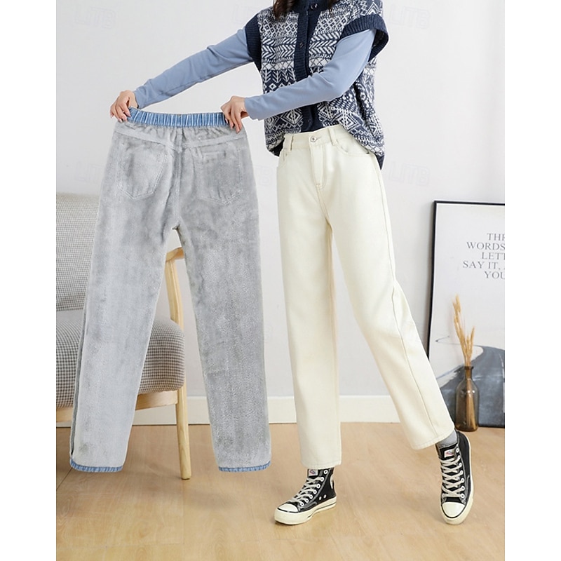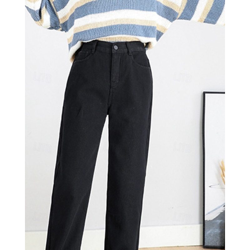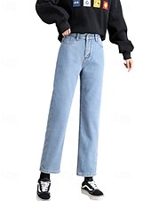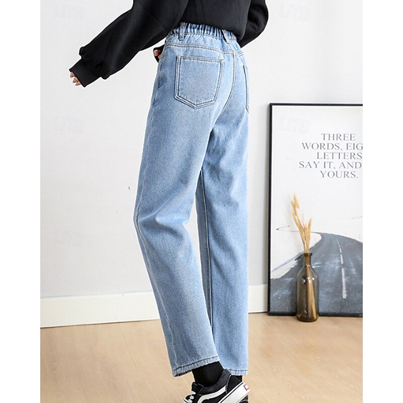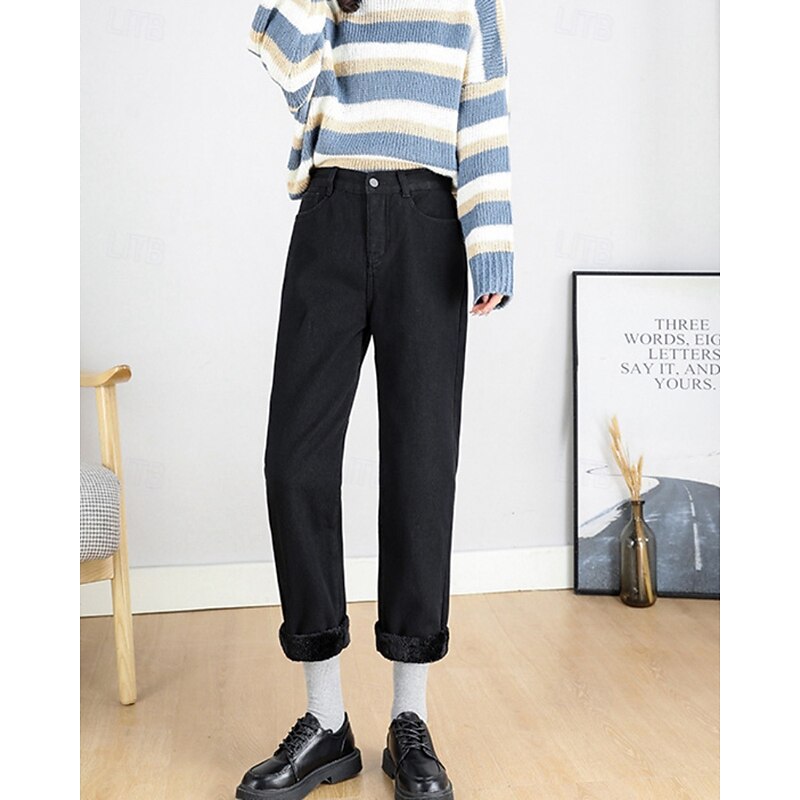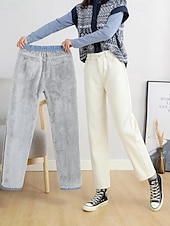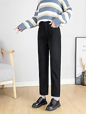 More information about Women's Jeans Chinos Harem Pants Vacation Vintage Streetwear Full Length Medium Waist Plain Pocket Elastic Waist Warm Comfortable Inelastic Micro-elastic Outdoor Vacation Holiday Black Ivory Blue