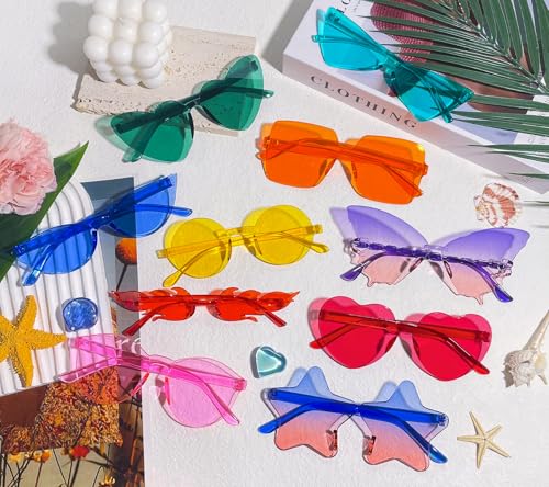 • UNIQUE COMBINATION – These package include 10 different colored rimless glasses, cat eyes, heart, square, round, fire, sufficient styles and quantities to match your daily needs