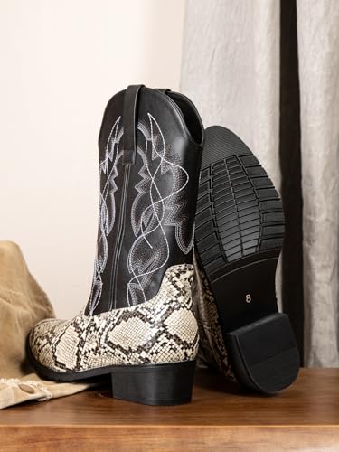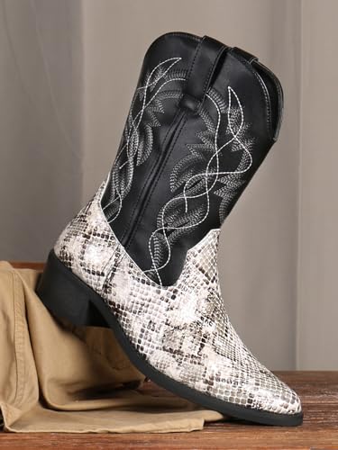 Python Manning Men's Boots Cowboy for Men Classic Pointed Toe Western Pull Up Snakeskin Embroidered Mid-Calf Boots 6