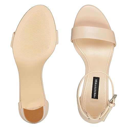 MIRAAZZURRA Women Heeled Sandals Round Open Toe Ankle Strap Chunky Low Heel One Strap Sandals 5