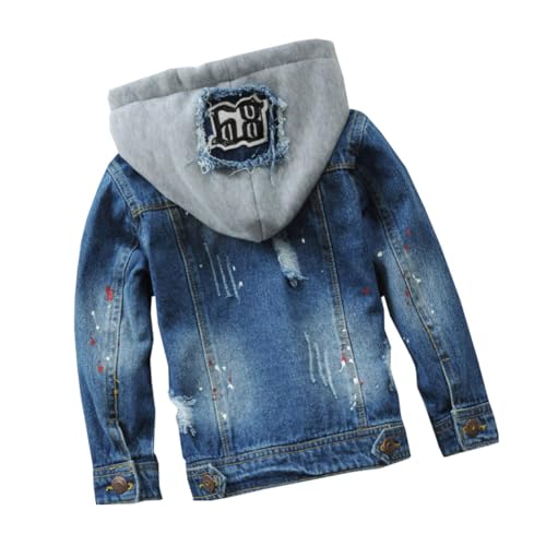 • Unisex-child soft cotton jeans hoodies outerwear for big boys girls casual windproof cowboy jacket top with both side pockets.Dual button-flap chest pockets, long sleeve, detachable hoodie collar, classic style, lovely shoulder decoration,simple patterned, fashionable spring fall coat.