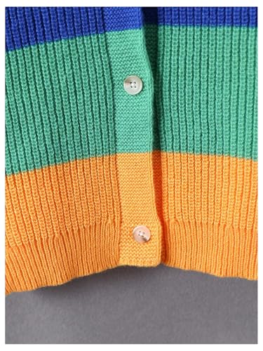 Floerns Girl's Rainbow Striped Button Down Cardigan Long Sleeve Drop Shoulder Sweater Knitwear 5