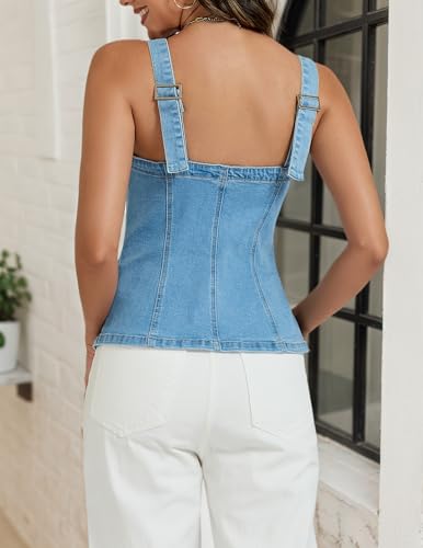 Ladyful Denim Vest Tops for Women Stretchy Denim Corset Tube Tank Top Adjustable Straps Y2K Jean Vest Suit Waistcoat 4