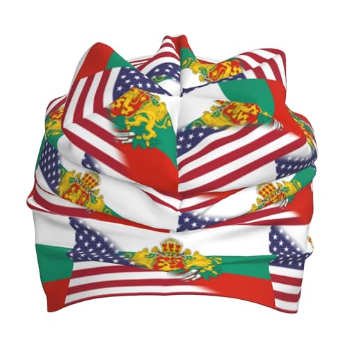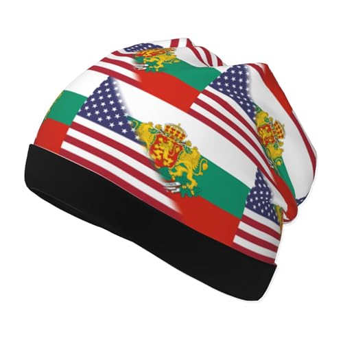 American Flag and Bulgarian Badge Flag Kids Leisure Elastic Knitted Hat Junior Large Size Knit Cap Child Beanie Black 1
