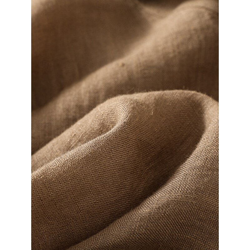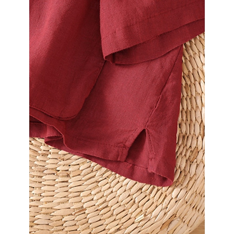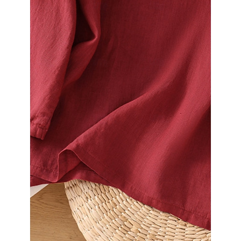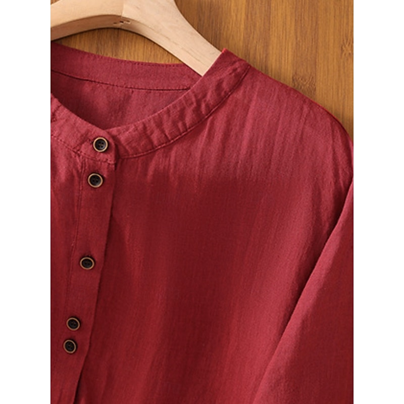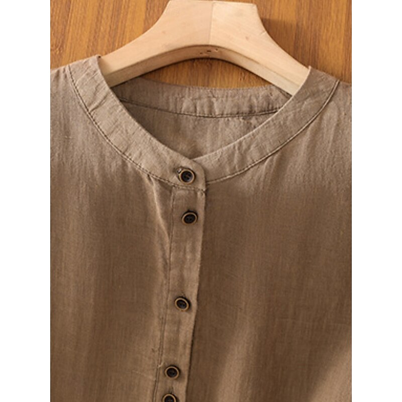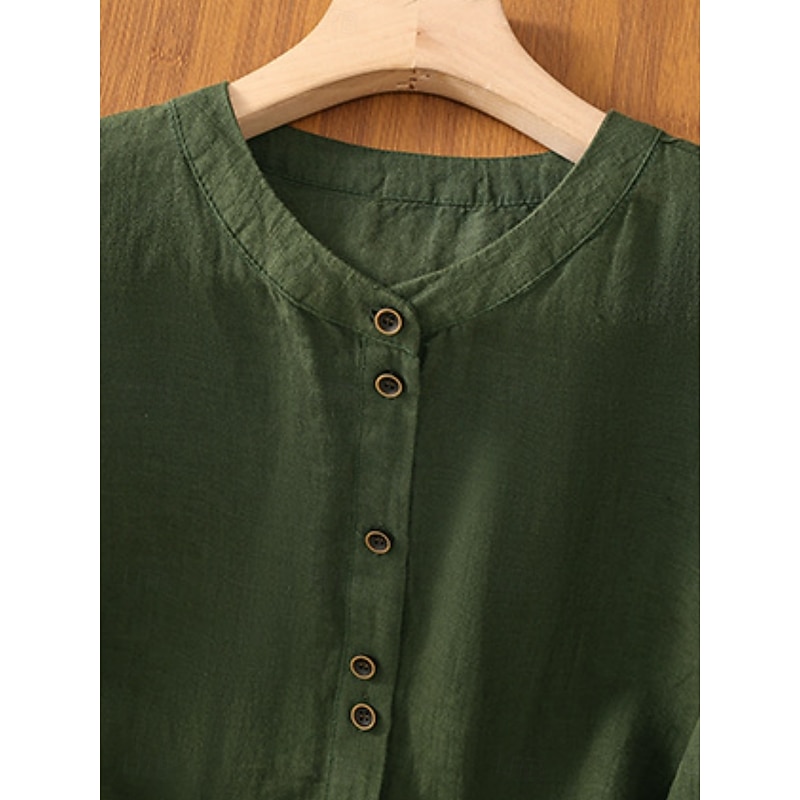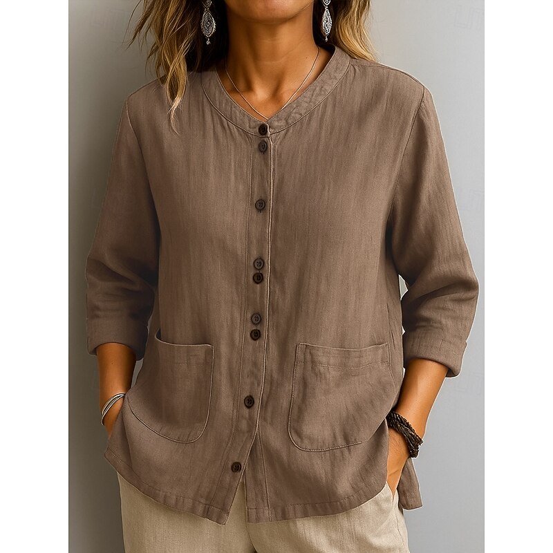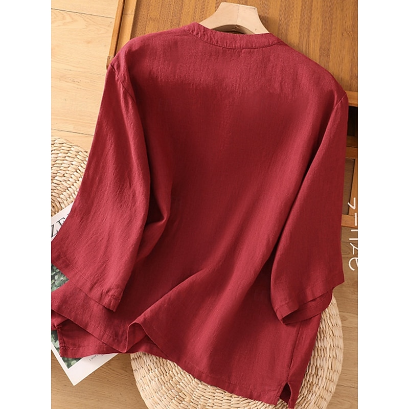 More information about Women's Cotton Linen Shirts Solid Color Basic Casual 3/4 Length Sleeve Crew Neck Regular Tops Daily Pocket Buttons White Wine Green Khaki Summer Spring Fall