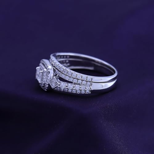 Bridal Ring Set for Women Princess & Round Lab Created Moissanite or Lab Grown Diamond Halo Ring in 14K Gold Over Sterling Silver Jewelry Gift for Her 1