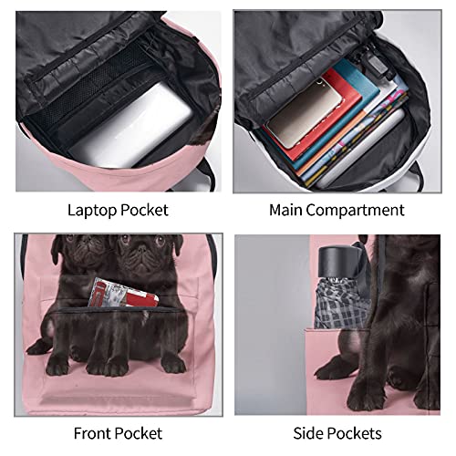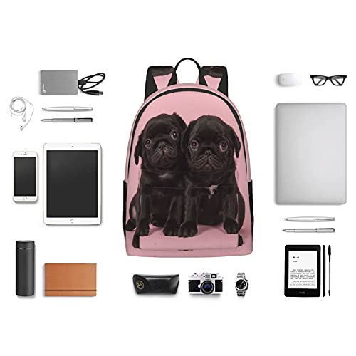 16 inch backpack Cute Black Pug Laptop Backpack Full Print School Bookbag Shoulder Bag for Travel Daypack 6