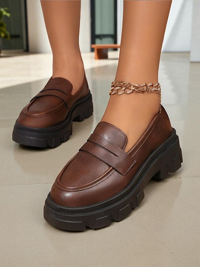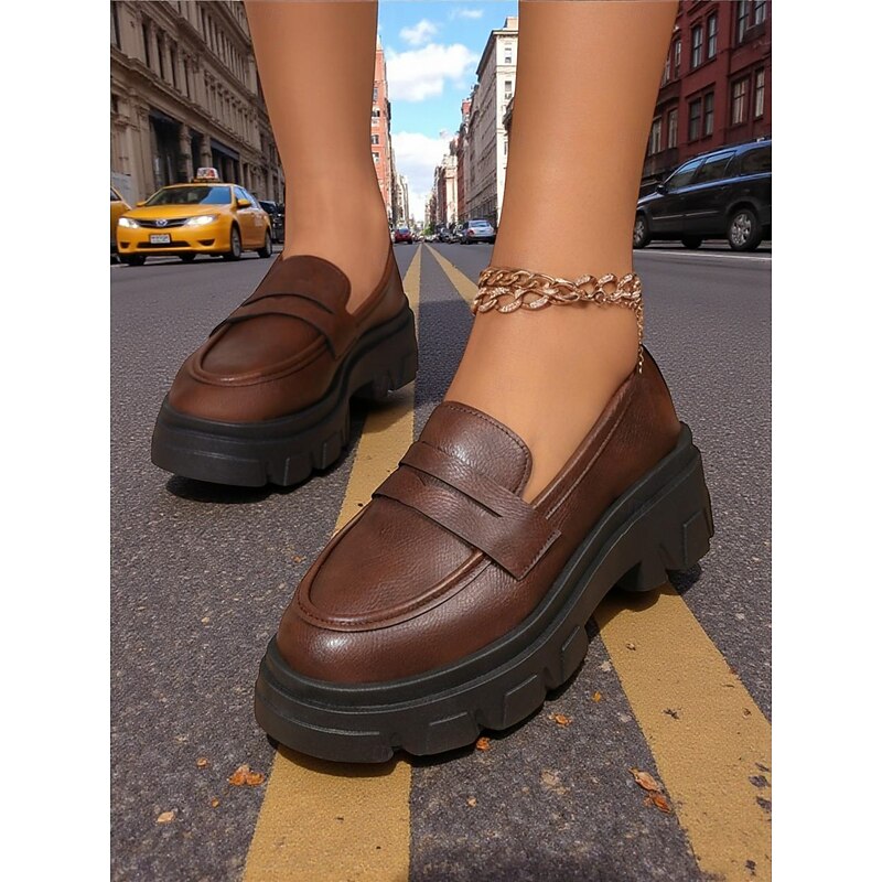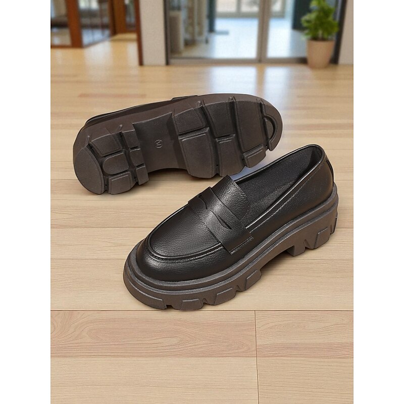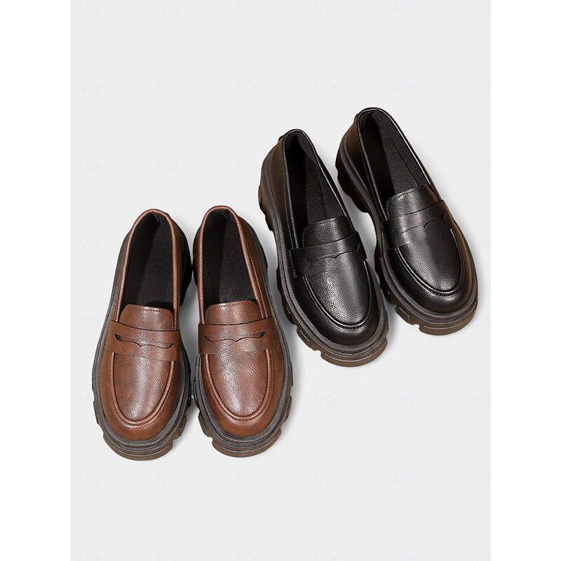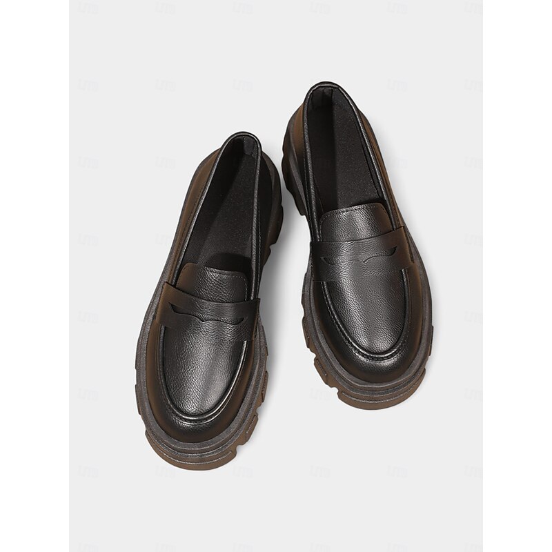 HOT ! Women's Black Chunky Loafers with Platform Sole - Trendy Slip-On Casual Shoes for Everyday Wear, Office, and Weekend Outings