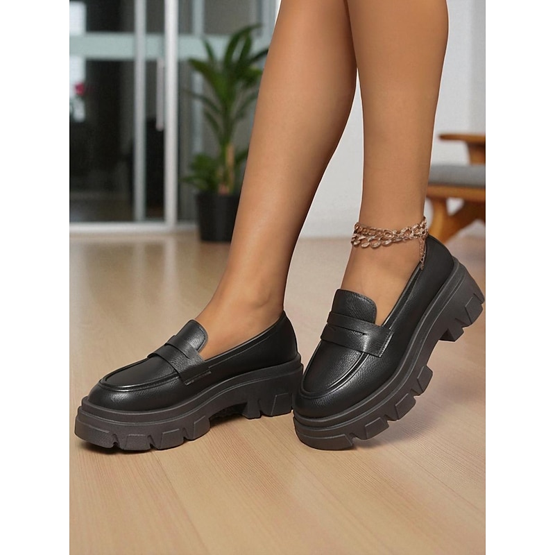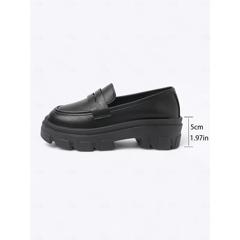 More information about Women's Black Chunky Loafers with Platform Sole - Trendy Slip-On Casual Shoes for Everyday Wear, Office, and Weekend Outings