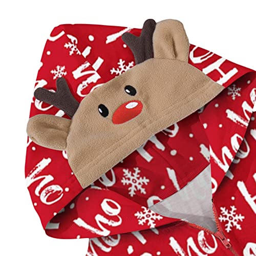 Christmas Matching Pajamas for Couples Funny Printed Zipper One Piece Hoodie Jumpsuit Onesie for Adult Women Men
