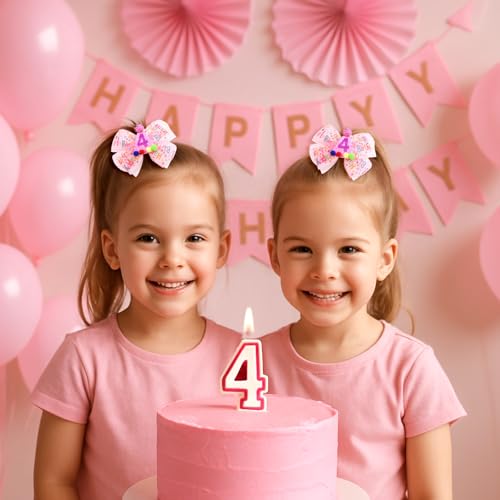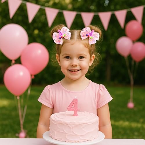 Winmany 2-Pack Birthday Hair Bows for Baby Girls, Strawberry Pink & Blue Headbands and Hair Clips with Sparkly Numbers for Ages 1-6, Cake Smash Photo Props & Party Accessories (Pink 4, 4 Years) 6