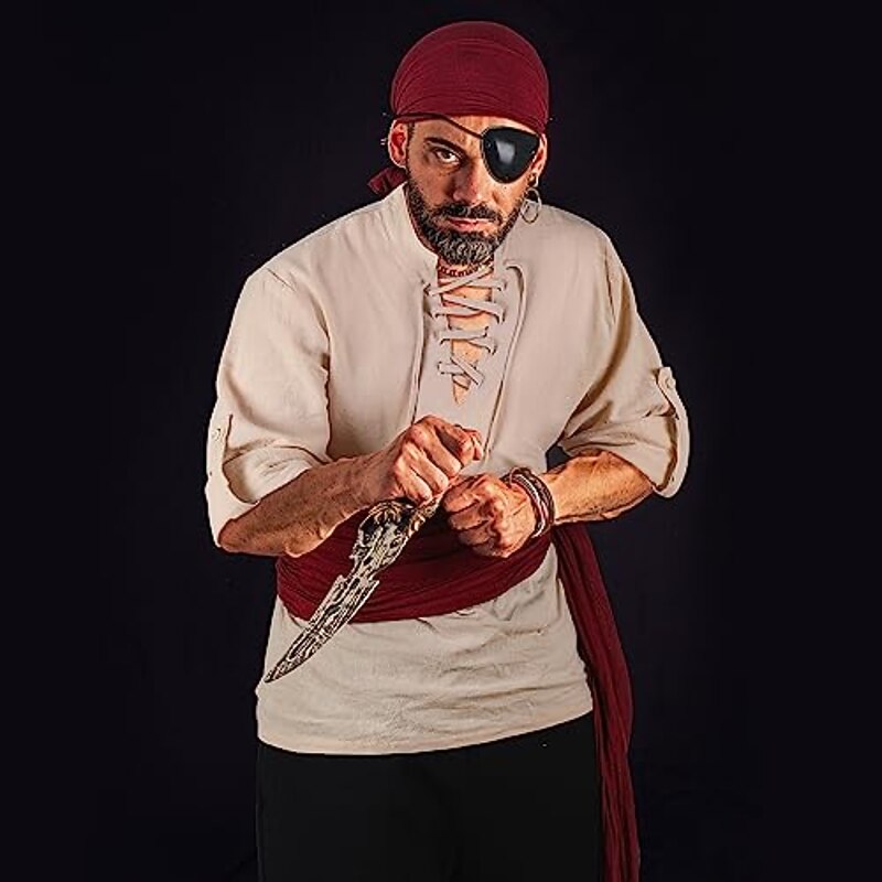 More information about Retro Vintage Medieval Renaissance Pants Waist Belt Shirt Pirate Viking Ranger Fancy Dress Men's Pirate Halloween Carnival Party Adults' Shirt Pants Headwear All Seasons