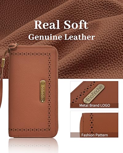 sought-after ! Large Genuine Leather Women Wallet Bifold Purse Clutch RFID Block Card Holder Zipper Wristlet Strap for Ladies Checkbook