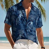 More information about Men's Floral Print Tropical Flowers Parrot Shirt Summer Hawaiian Shirt Button Up Shirt Short Sleeve Hawaiian Resort Vacation Holiday Beach Wear Summer Spring Turndown 3D Print Collared Shirts Dark