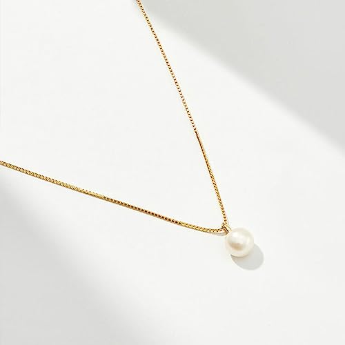 Single Pearl Necklace Freshwater Pearl Pendant 925 Sterling Silver with 14K Gold Necklaces Gift for Women 5
