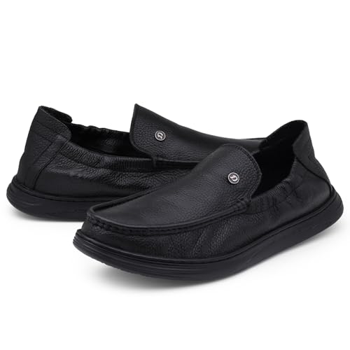 iconic Genuine Leather Formal Shoes for Men with Memory Foam Cushion| Ultra Lightweight & Comfortable|trendy & Flexible|Parties,Occasions,Office,Wedding,Casual|Black Slip On D-805
